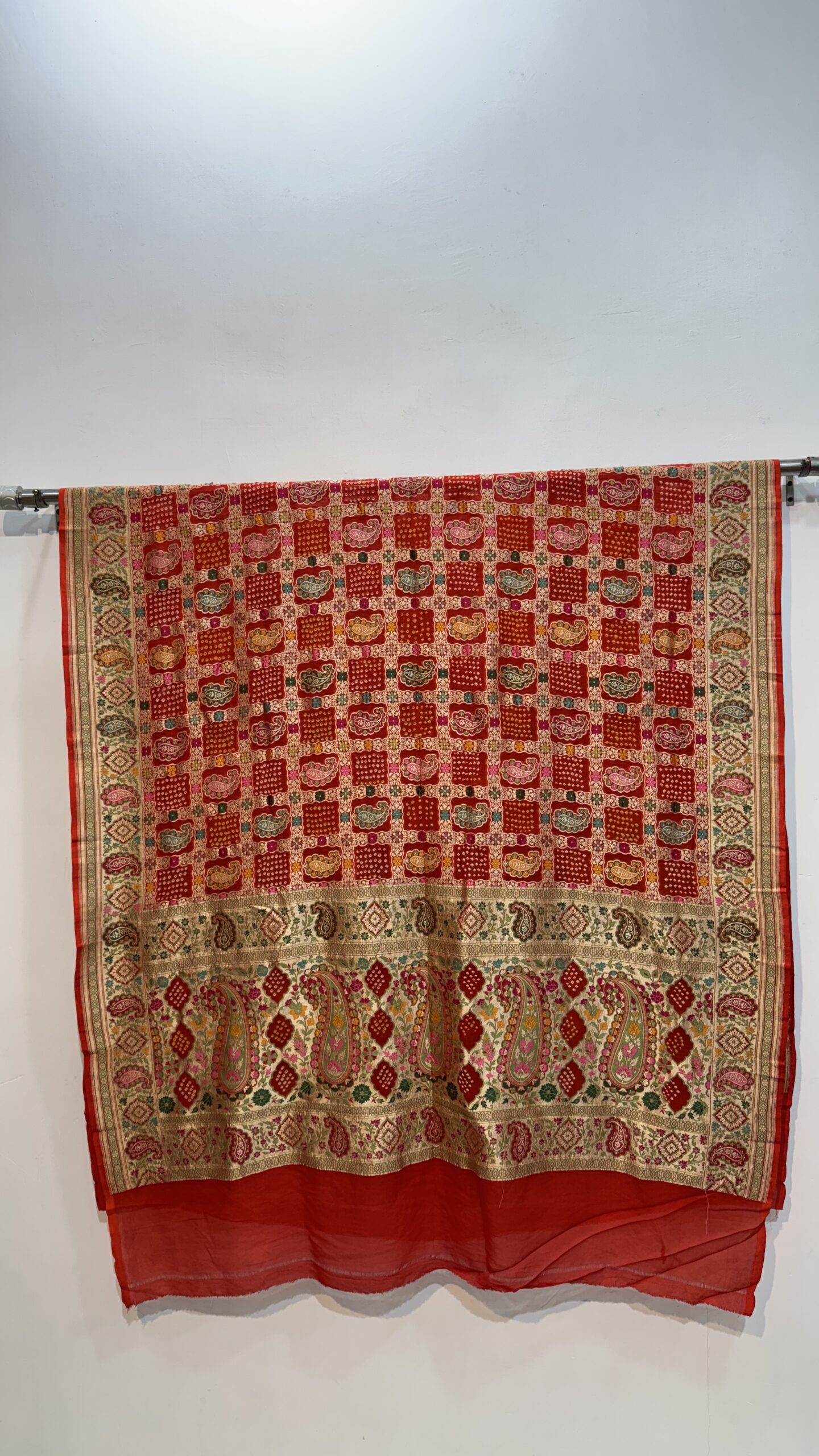 Style Tip: Pair this dupatta with lehenga choli, Anarkali suit, or plain silk kurta for a regal ethnic look.