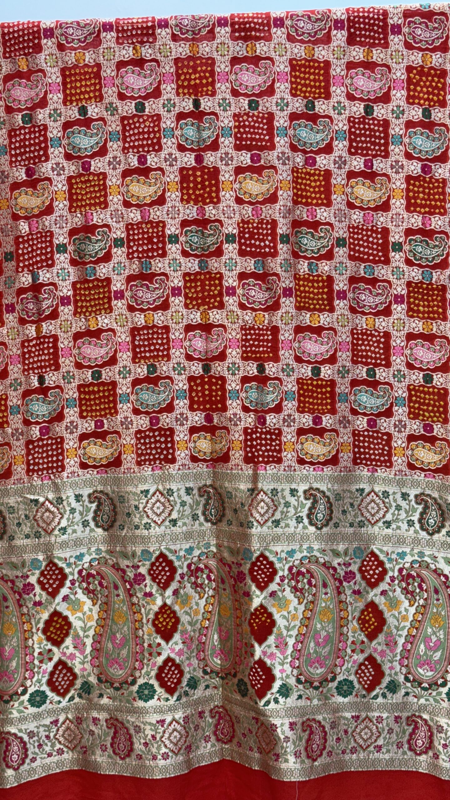 Traditional Bandhani Circular Dot Patterns with Golden Highlights
