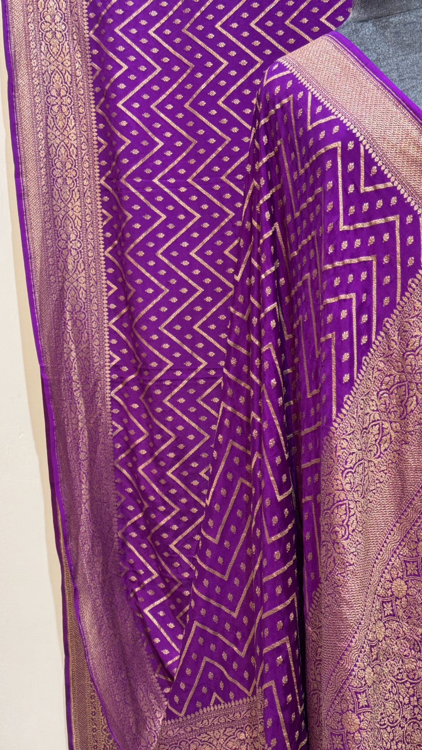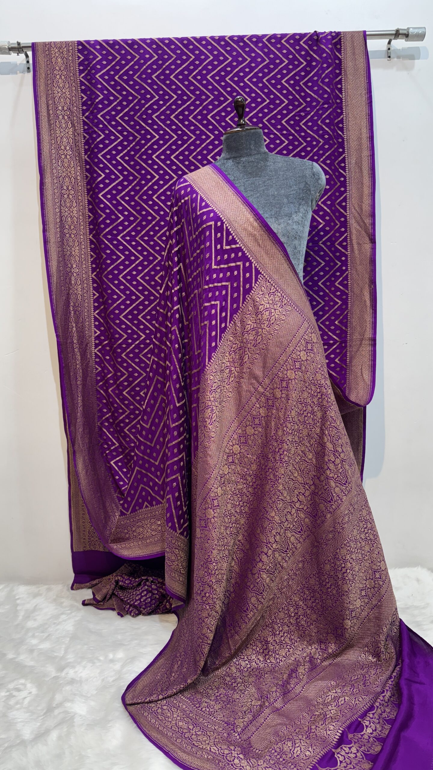 - Color: Royal Purple with Gold Zari