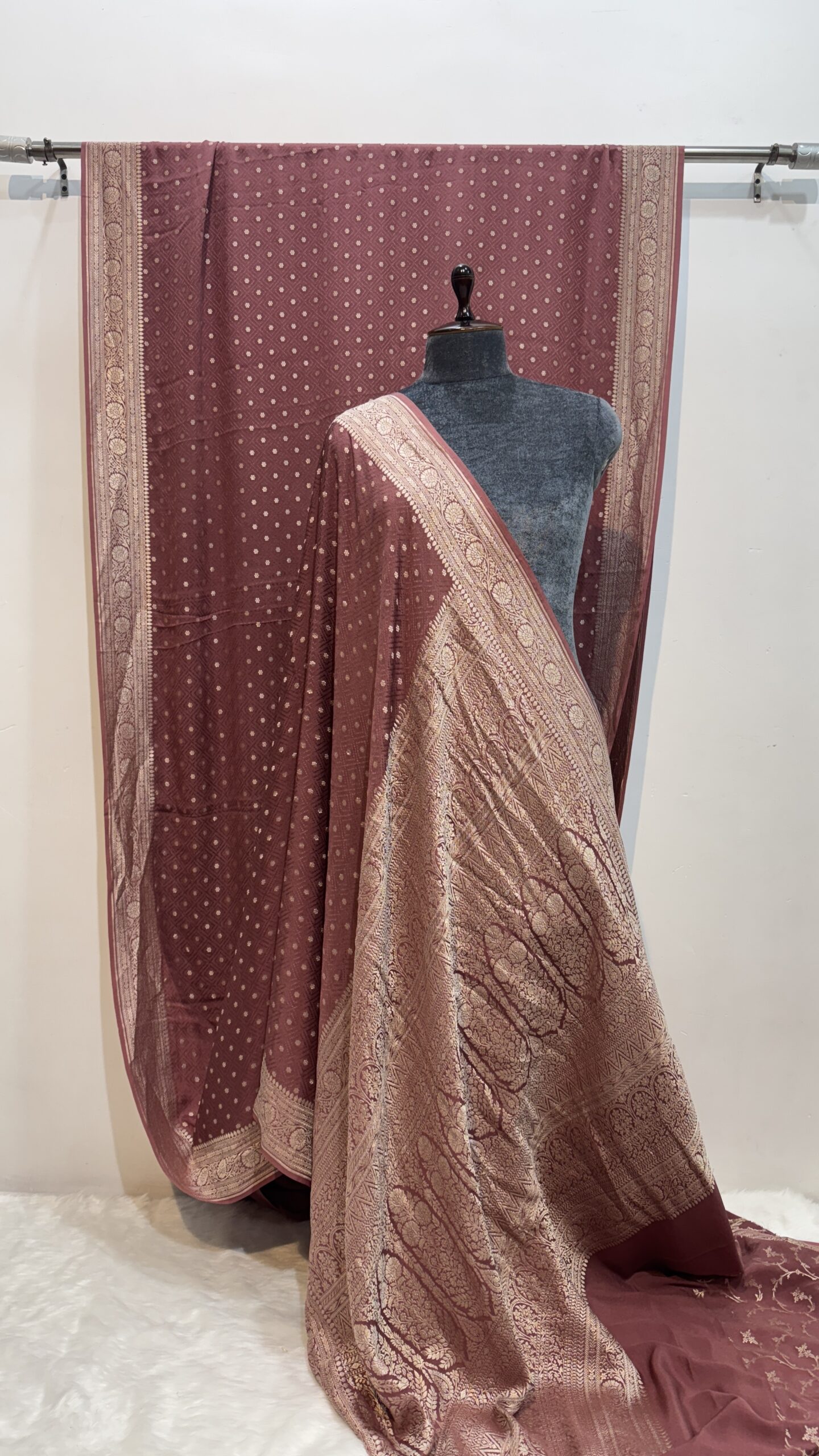 ✨ Work: Platinum Zari Detailing with Intricate Patterns