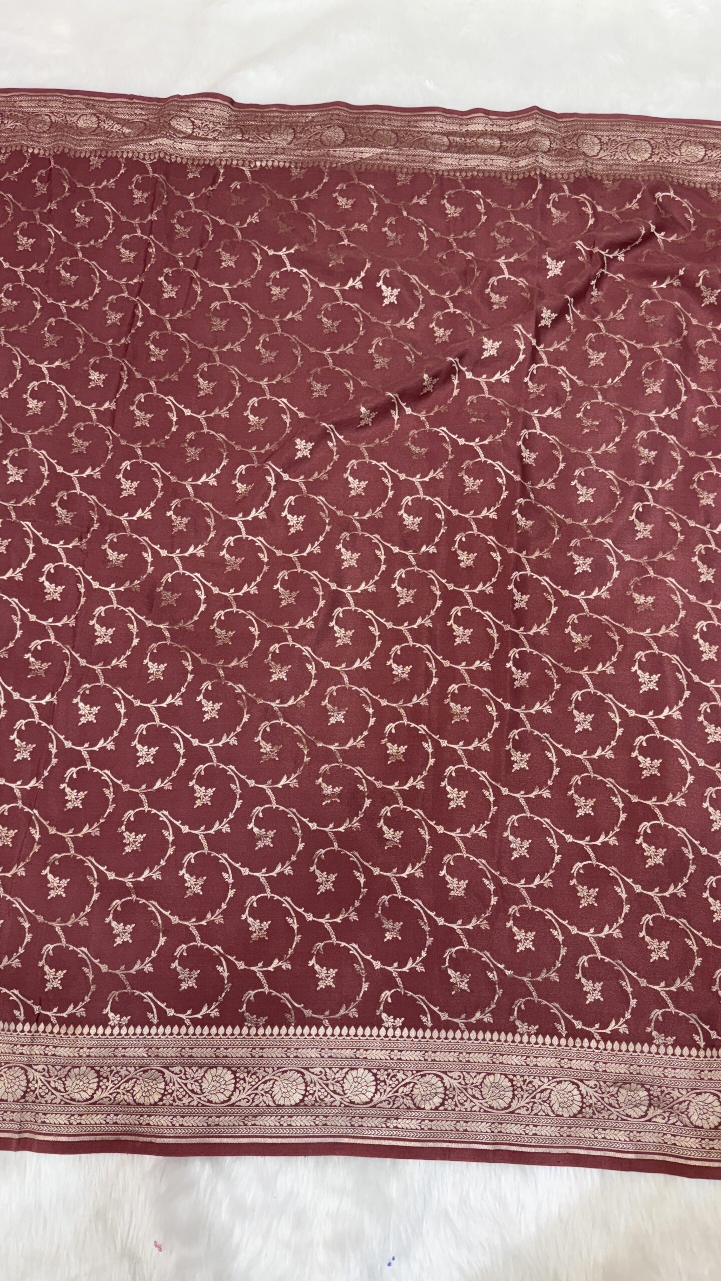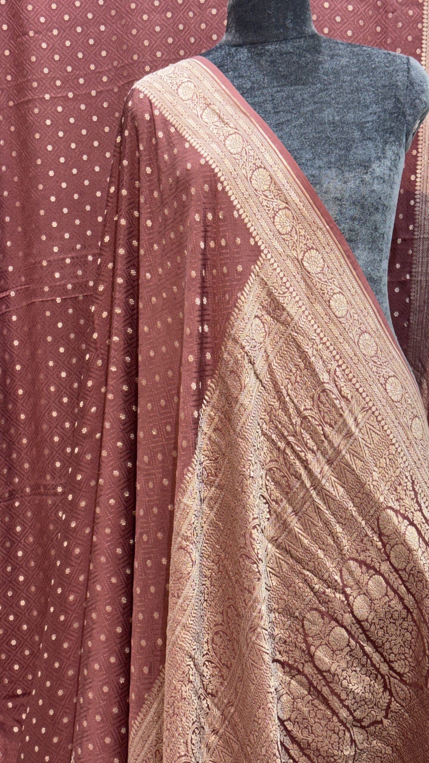 ✨ Color: Elegant Wine/Burgundy Tone with Contrasting Zari Work