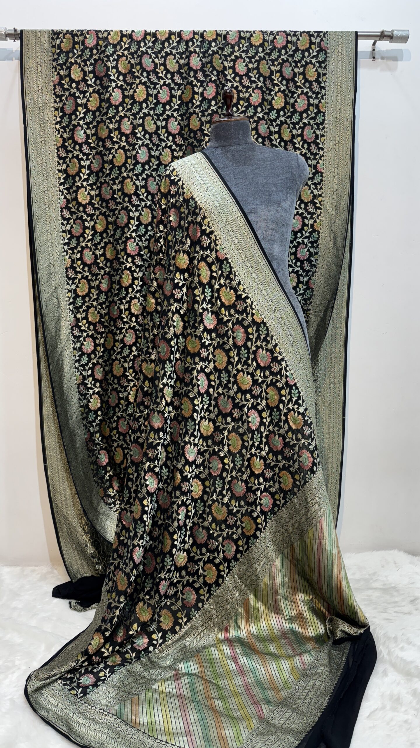 ✨ Border & Pallu: Elegant golden zari border with multicolor striped zari pallu