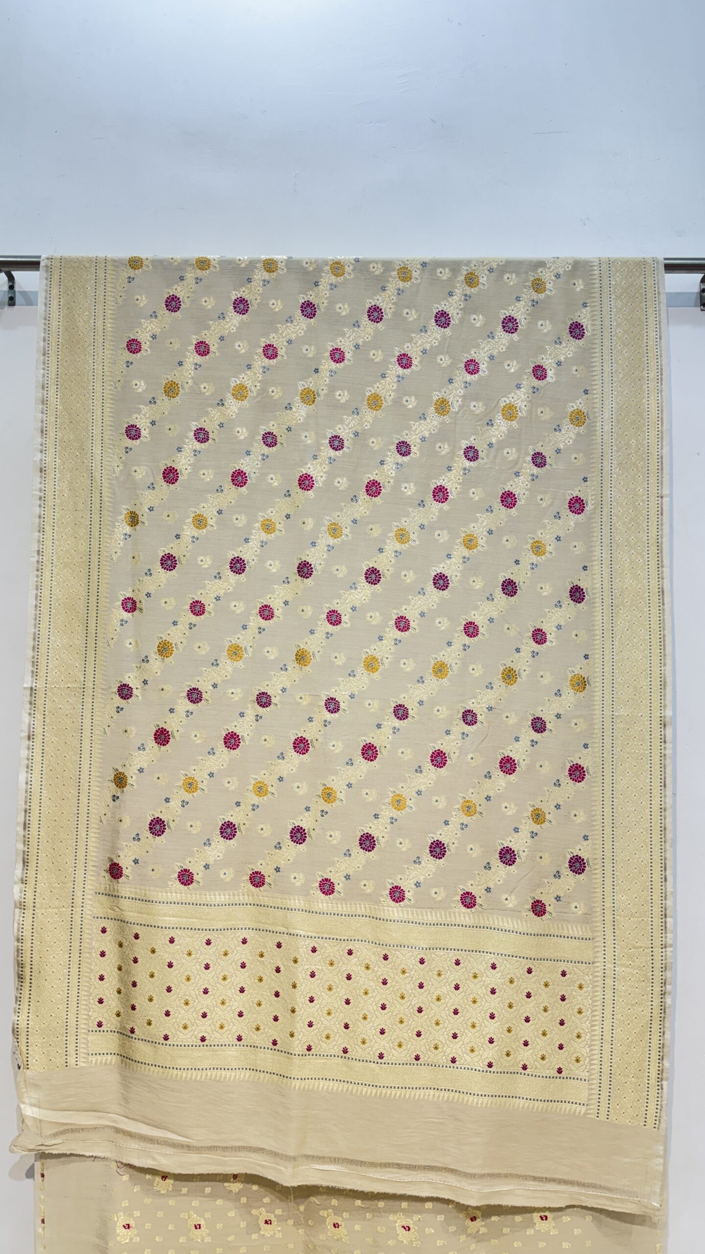 Step into timeless elegance with this exquisite Munga Silk Meena Kari Suit Set, crafted for those who appreciate subtle luxury and fine craftsmanship.