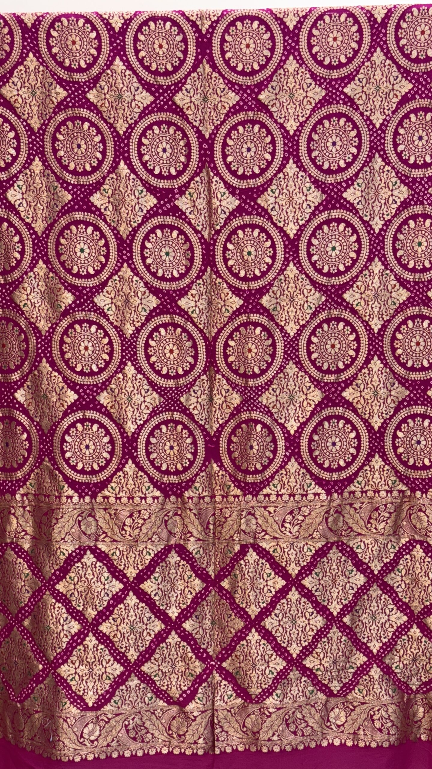 Work: Traditional Banarasi Zari Weaving with Bandhej Pattern