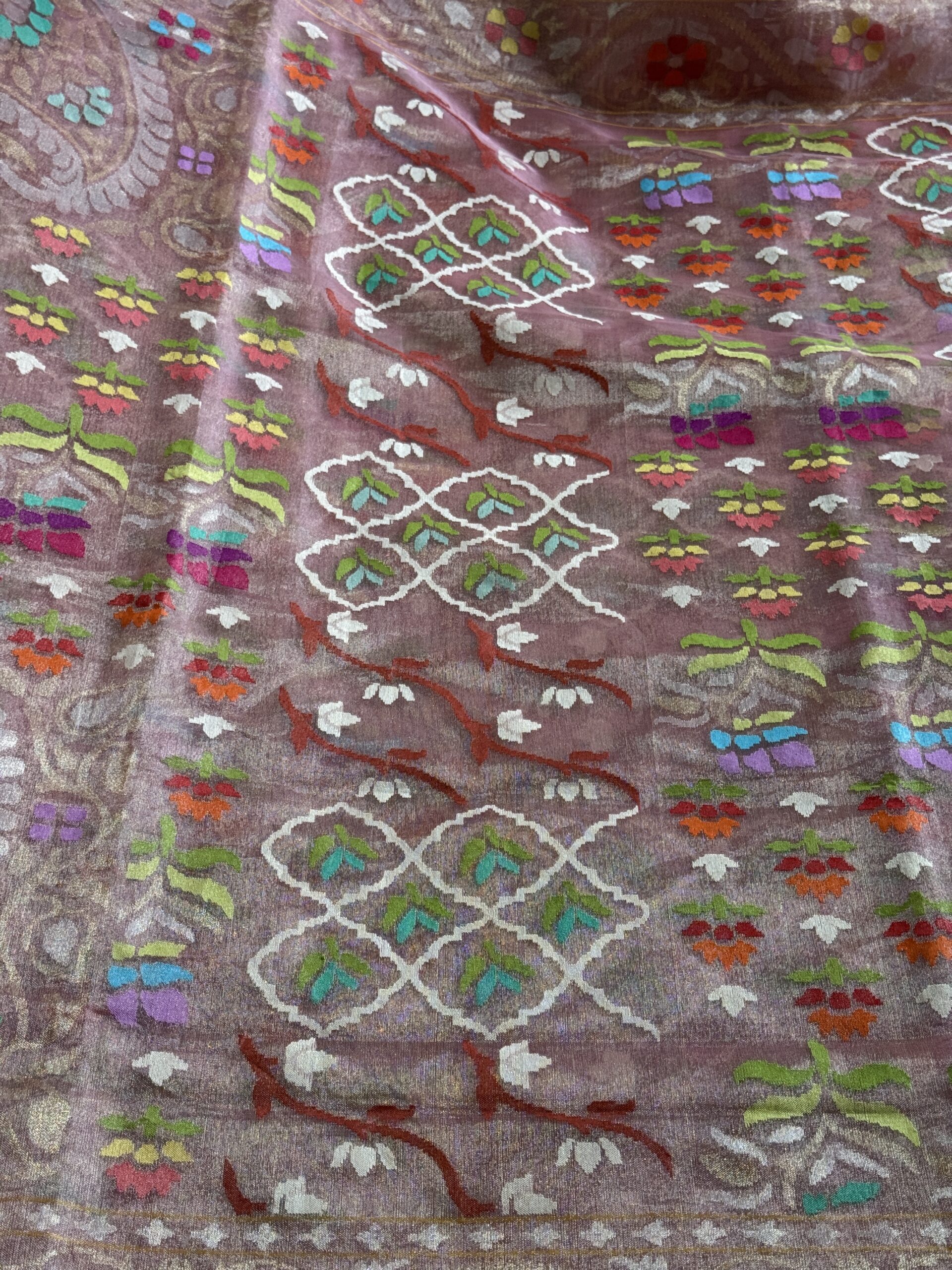 real zari silver Jamdhani saree